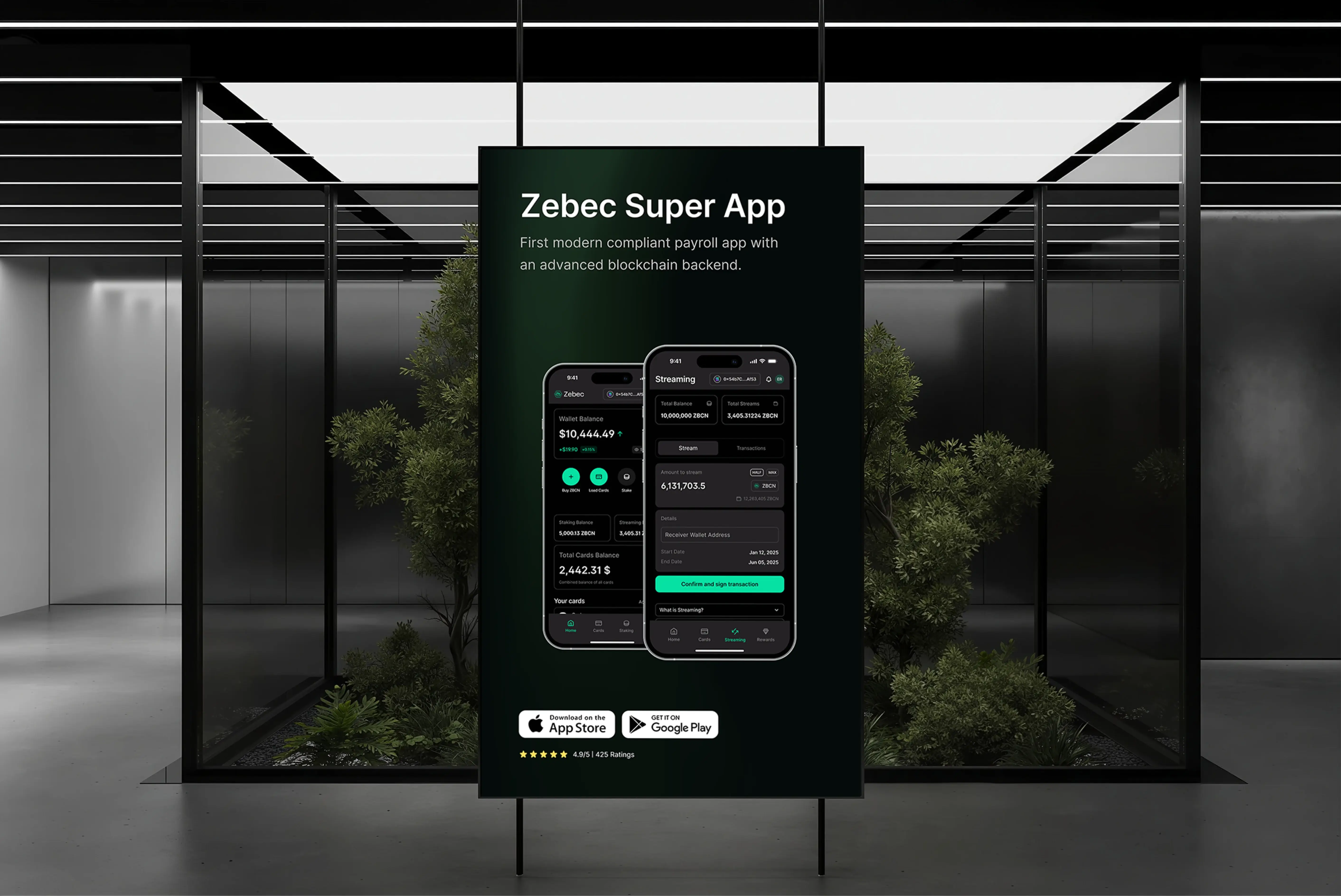 The website was rebuilt for speed and independence. Marketing now publishes and updates content without developer involvement. The brand evolution introduced new visual elements, a comprehensive design system, and consistency across every channel. For the SuperApp, we focused on usability — refining flows, tightening the interface, and polishing the overall experience so it feels as trustworthy as the payments infrastructure behind it. This isn't a project with a start and end date. We're an embedded design partner, evolving with Zebec so the brand never falls behind the product.
